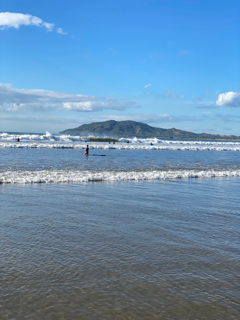 Three hours later, we were in Tamarindo. It was crowded, but the water, sand, and views were beautiful.